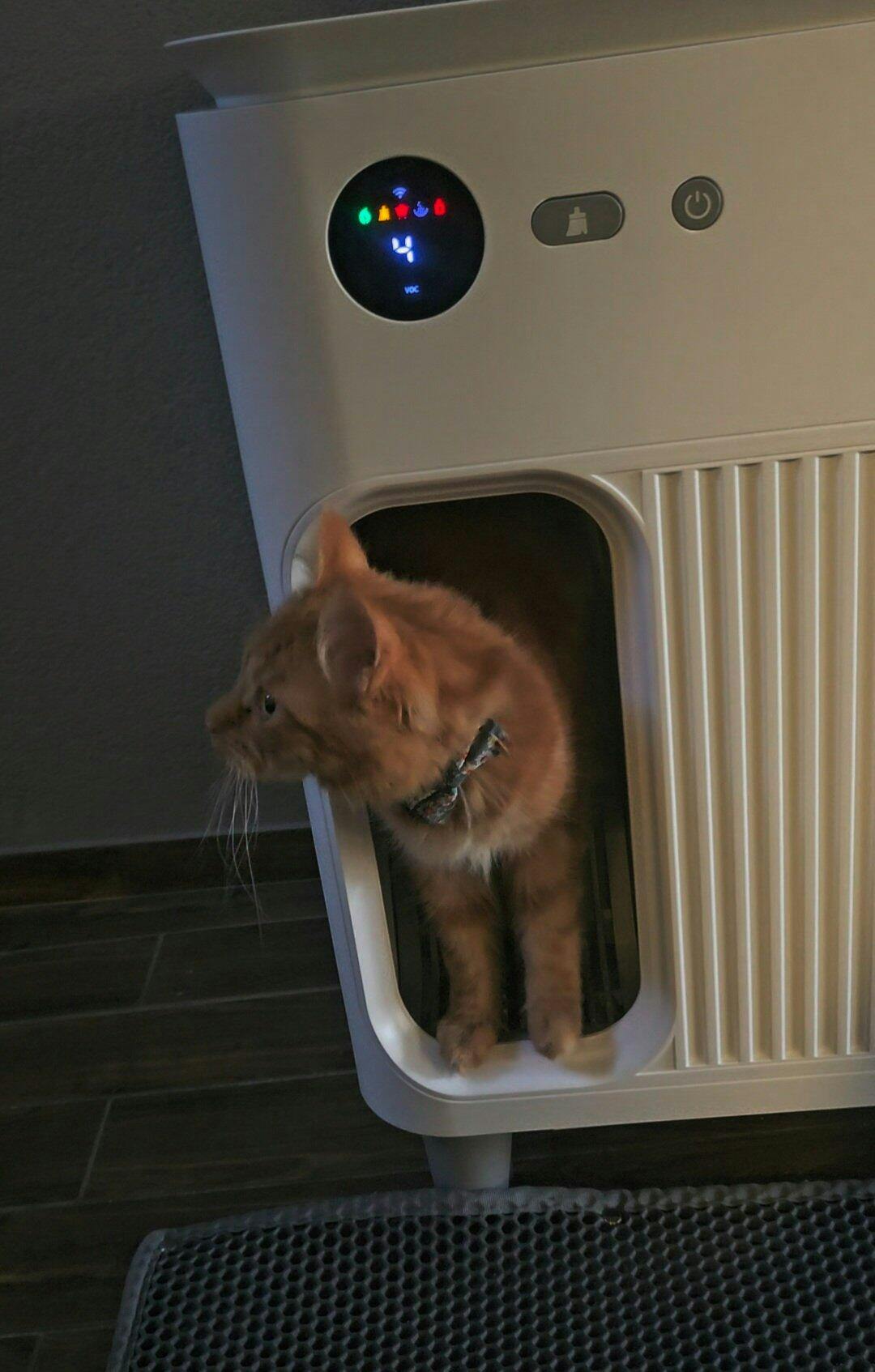 - Der integrierte Streuabstreifer entfernt einen Großteil der Streukrümel vor dem Verlassen der Cleanbox von den Katzenpfoten